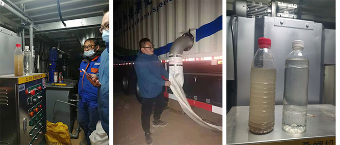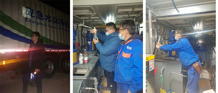 為保障MagSep-SOV 應(yīng)急水體凈化特種作業(yè)車能按時順利投入使用,車輛就位當晚,必源環(huán)保技術(shù)人員連夜進行調(diào)試,經(jīng)過數(shù)小時連續(xù)奮戰(zhàn),車輛調(diào)試完成并成功交付使用。